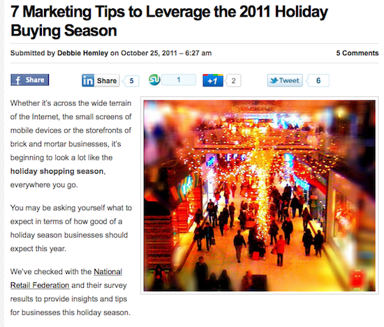 Facebook Marketing Ideas for Small to Mid-Sized Businesses and 7 Marketing Tips to Leverage the 2011 Holiday Buying Season.
