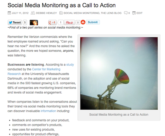 This week I explored the topic of social media monitoring for an article for Social Lens Research’s new blog, The Lens.