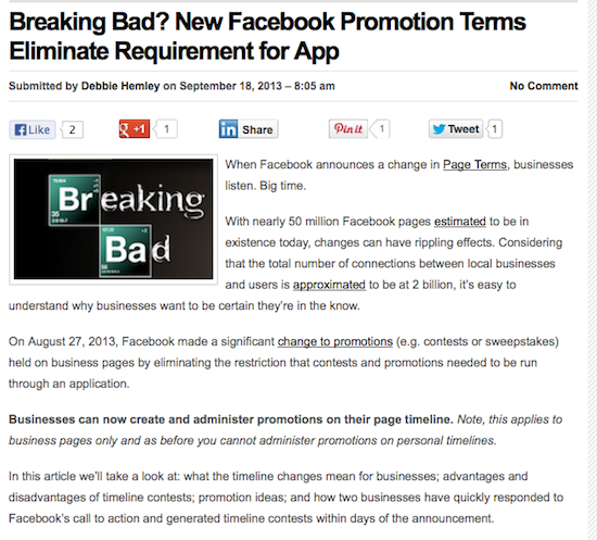 Ok, I may have stretched the truth here a little. It’s not like Walter White was introduced or had any run-in’s with Facebook’s new promotion terms. But as a Breaking Bad fan, I couldn’t stop thinking about last week’s episode as I was working on my new article for GigCoin published today. My bad?