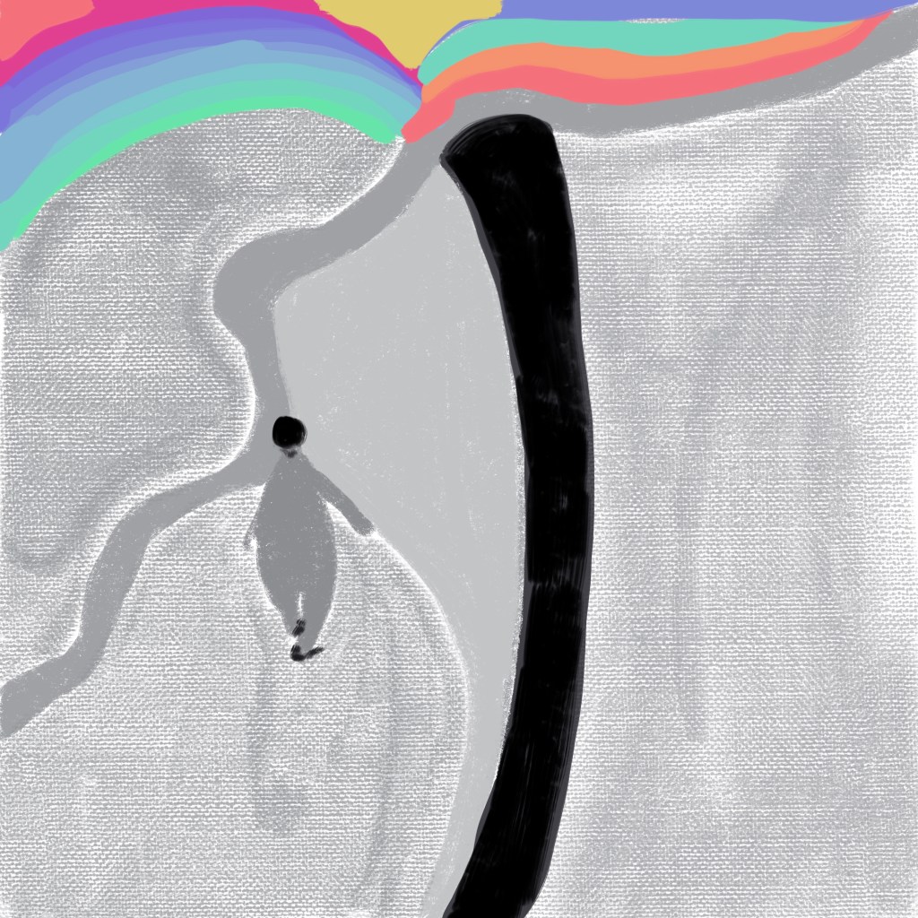 When doing these digital paintings on my iPad in Procreate I often start with getting settled into my space and listening to music.