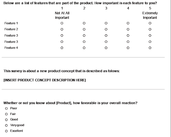 It’s always good to know that there are some ready-to-use online resources. We came across several templates that will help to get you started with concept testing without having to reinvent the wheel.